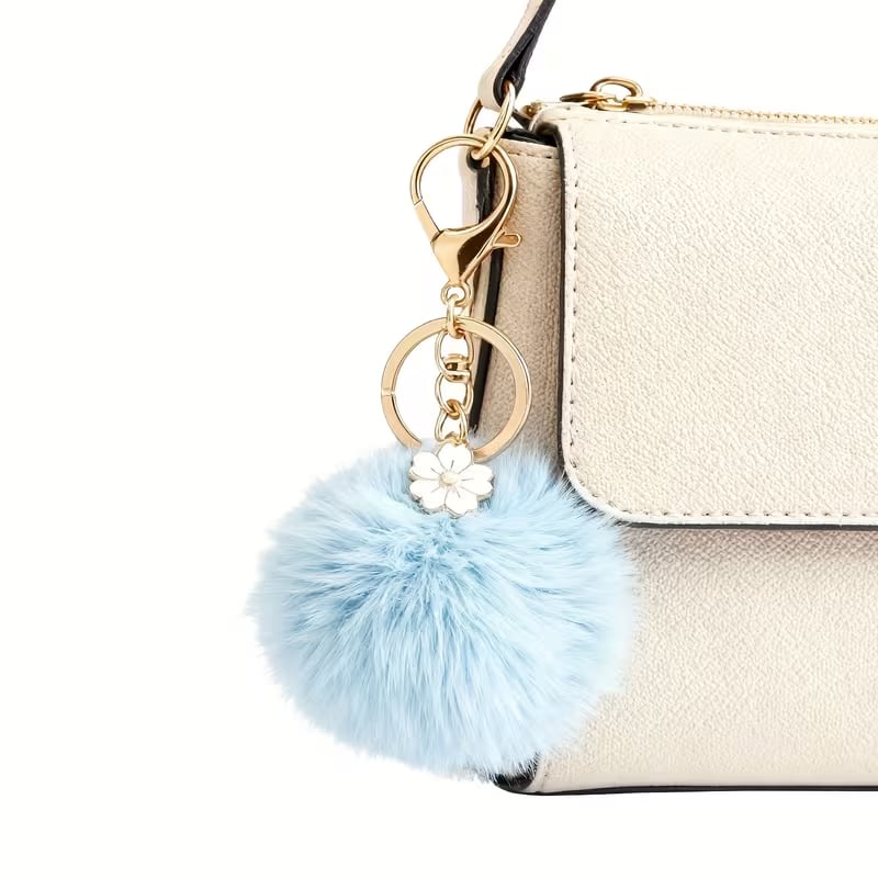 ## 可愛らしさ満点の「フラワーチャーム付きシングルフェイクファーボールキーホルダー」!