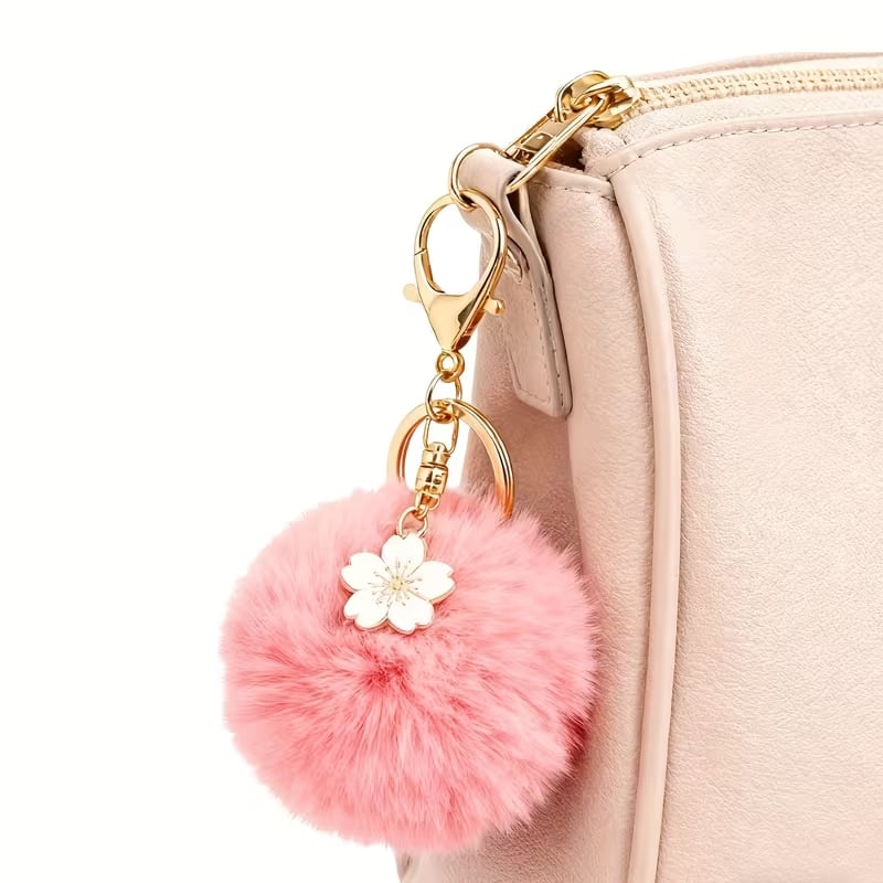 ## 可愛らしさ満載の「フラワーチャーム付きシングルフェイクファーボールキーホルダー」!